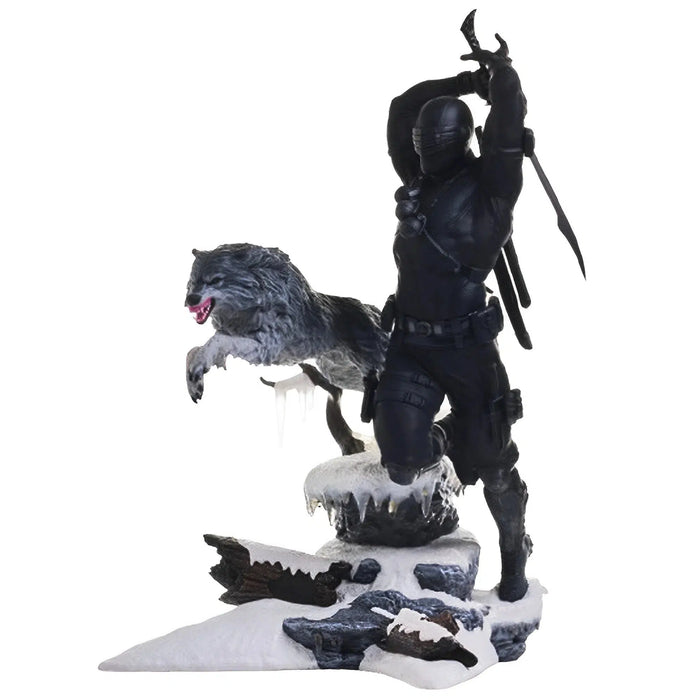 Diorama Design: Features Snake Eyes and his wolf companion, Timber, captured in a dynamic pose as Snake Eyes leaps from a snowy ledge.