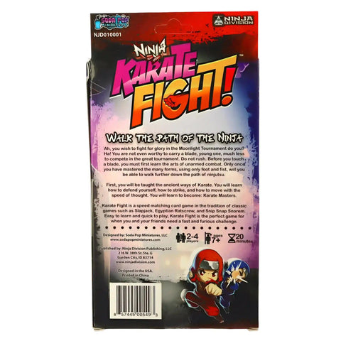 "Karate Fight" introduces a thrilling speed-matching card game reminiscent of classic titles like Slapjack, Egyptian Ratscrew, and Snip Snap Snorem. With an easy-to-learn and quick-to-play format, it provides the perfect platform for a fast and intense challenge among friends. Published by Soda Pop Miniatures and part of the Takoashi University product line, this game promises an immersive experience where strategy and speed converge. Are you ready to embark on a journey of ninja mastery and engage in a furious, high-speed showdown with your fellow players? "Karate Fight! Ninja All Stars" awaits, offering a perfect blend of excitement and skill in every round.