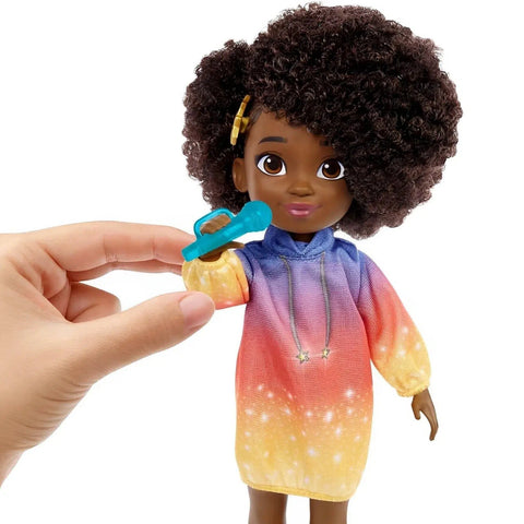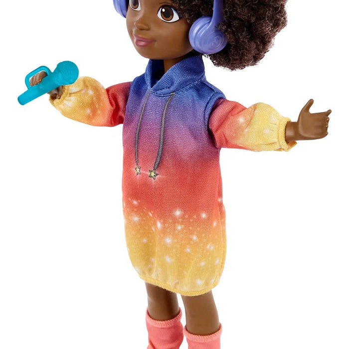 Meet Karma, the star of Netflix's Karma's World, in doll form! This 8.7-inch singing doll brings the lyrically gifted middle-schooler to life, ready to rap dreams and sing along with kids everywhere. With a simple lift of her arm, Karma treats fans to two iconic songs from the show, making playtime a musical adventure.