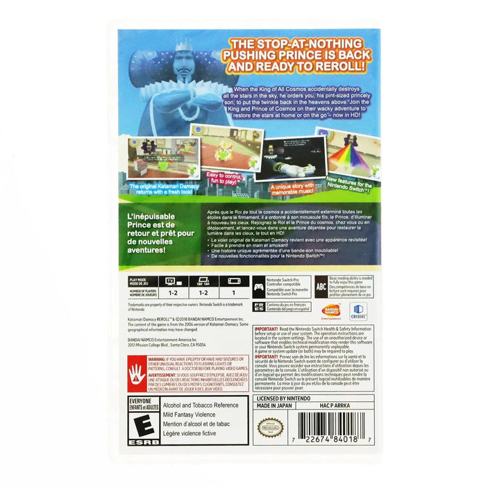 Get ready to roll with Katamari Damacy: REROLL on Nintendo Switch™! The quirky and beloved roll-em-up game is back in full HD, with fully updated graphics and completely recreated cutscenes. Join the stop-at-nothing pushing prince and his pint-sized princely son on a wacky adventure to restore the stars in the sky after the King of All Cosmos accidentally destroys them all.