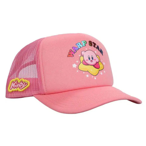 Show off your love for the adorable Kirby with this Kirby Warp Star hat from Bioworld Merchandising. This snapback trucker hat features Kirby riding a star on the front with a Kirby logo patch on the side. This one size fits most hat is perfect for any fan looking to add some Kirby merchandise.