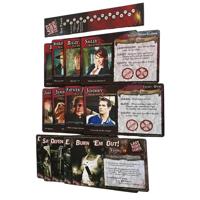 Prepare for a pulse-pounding adventure with Last Night on Earth: The Zombie Game, a thrilling survival horror board game from Flying Frog Productions. In this cinematic experience, small-town heroes are pitted against a relentless horde of zombies, with one team of players controlling the heroes and one or two players controlling the undead.
