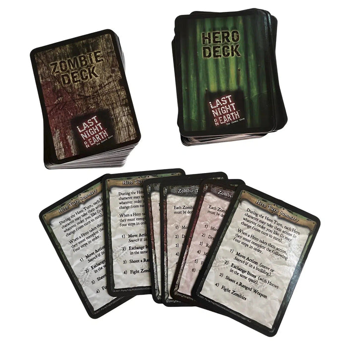 Last Night on Earth: The Zombie Game also includes a CD soundtrack of original thematic music, immersing players even further into the gripping atmosphere. With each hero represented by a detailed plastic sculpted miniature and 14 zombies in two colors, along with high-quality cardboard counters for objects and effects, this game delivers an immersive and unforgettable experience for fans of survival horror.