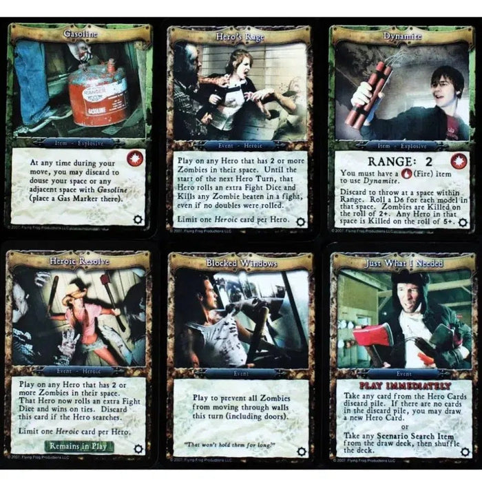 Tactical bonuses from the hero and zombie decks add depth to gameplay, while combat is resolved using six-sided dice and weapon cards that modify the outcome. Delve into the world of classic zombie movie tropes as you fight for survival, with all game art featuring stunning photographic imagery that enhances the cinematic feel.