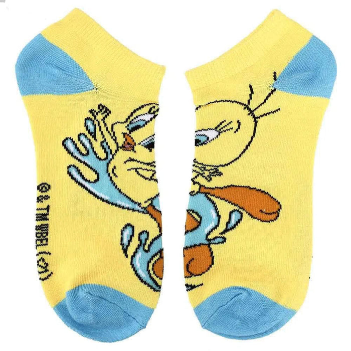 The bright and colorful patterns are easy to care for, with simple machine washing to keep them looking fresh. This five-pair set is not only practical but also a delightful way to celebrate the timeless charm of Looney Tunes. Whether you're reminiscing about your favorite cartoon moments or just embracing a fun style, these socks deliver on comfort, quality, and nostalgia.