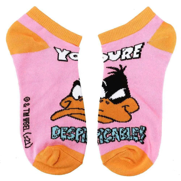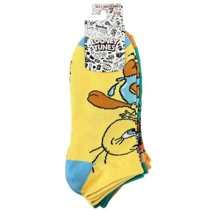 Bring the fun and nostalgia of classic cartoons to your wardrobe with the Looney Tunes - Cartoon Characters Ankle Socks (5 Pairs) by Bioworld. This playful set features vibrant designs showcasing beloved characters like Bugs Bunny, Daffy Duck, and more, making it a must-have for fans of the iconic series. Perfect for adding a dash of whimsy to your daily outfits, these socks are as functional as they are stylish.