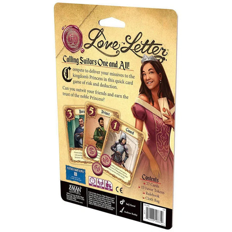 Win the heart of the Princess in Love Letter: Classic, the beloved card game of deduction, strategy, and intrigue. The noble Princess seeks a trusted confidant to aid her in her future reign, and only the most cunning suitor will gain her favor. To prove your worth, you must deliver your letter of intent by enlisting the help of the royal court—using their unique abilities to outmaneuver your rivals.