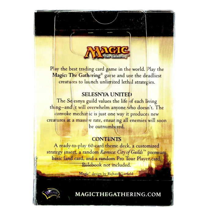 Embark on an adventure within the expansive Ravnica block, with the "Selesnya United" themed deck hailing from the heralded "Ravnica: City of Guilds" expansion. Immerse yourself in a world of strategic complexity and diverse gameplay dynamics.