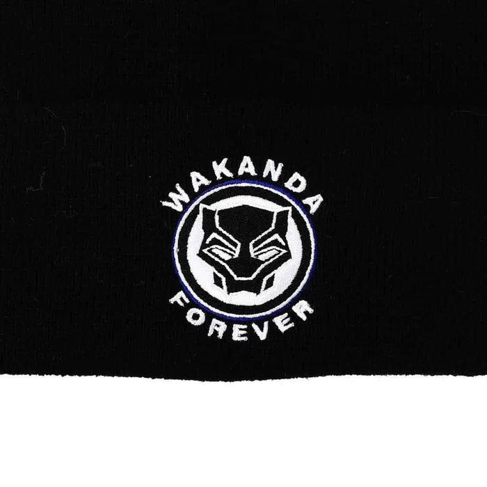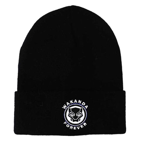 Celebrate the legacy of the Black Panther with the "Wakanda Forever" Cuff Beanie Hat by Bioworld. Featuring an embroidered Black Panther helmet logo encircled by the bold words "Wakanda Forever," this beanie is perfect for fans of the Wakandan superhero. With its sleek black design and striking white accents, this hat adds a powerful touch of Marvel fandom to any outfit.