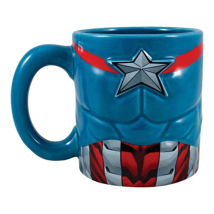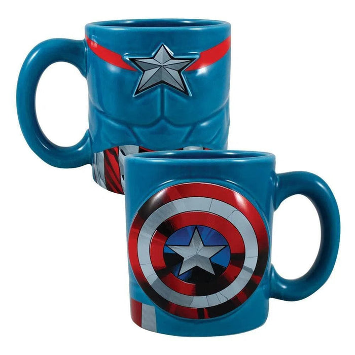 Elevate your morning routine with the Marvel Captain America Sculpted Ceramic Mug by Bioworld. This 20 oz. mug is more than just a vessel for your favorite beverage – it's a work of art for fans of the iconic superhero. Carefully custom sculpted with attention to detail, this high-quality ceramic masterpiece is not only functional for daily use but also serves as a unique collectible that will bring a touch of superhero flair to your kitchen or workspace. Whether you're sipping your coffee, tea, or any beverage of choice, this Captain America mug is designed to delight fans of all ages, making it a perfect addition to your own collection or an impressive gift for any Marvel enthusiast.