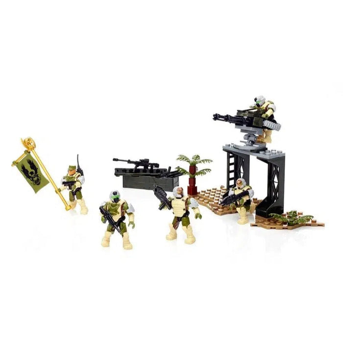 Prepare for high-stakes missions with the Mega Bloks Halo UNSC Sierra Squad building set, crafted to emulate the elite Fireteam Sierra from the iconic Halo universe. This squad fearlessly infiltrates Covenant camps, charging across the battlefield for a formidable land assault. The set features the construction of an anti-aircraft dual machine gun turret, ready to obliterate enemy forces from the sky.