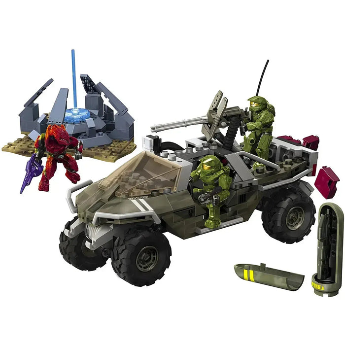 Buildable UNSC Warthog Vehicle: Assemble the newly redesigned Warthog with rotating wheels and mounted weaponry for dynamic battle scenes and mission setups.