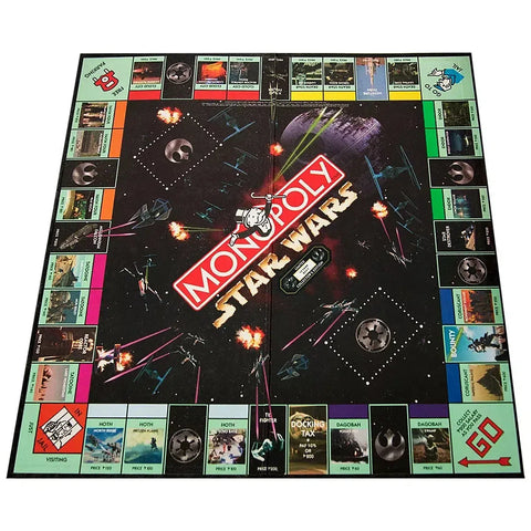 Miniature vehicles replace traditional houses and hotels, with X-wing fighters and Corellian freighters marking Rebel territories, while TIE fighters and Star Destroyers signify Imperial strongholds. Whether you’re a lifelong Star Wars fan or a Monopoly enthusiast, this special edition offers an unforgettable gaming experience filled with strategy, adventure, and the ultimate struggle for control of the galaxy!