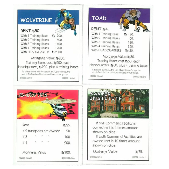 In this edition, players can buy, sell, and trade iconic X-Men locations and characters. From Xavier's School for Gifted Youngsters to Magneto's Island Fortress, each property brings a unique piece of the X-Men lore to your game night. The game pieces are custom-designed to represent beloved X-Men characters, making each turn a thrilling experience.