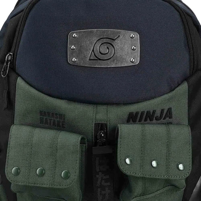 Design & Functionality Bold Naruto - Kakashi Hatake design for fans of the anime Back panel zipper compartment for additional storage Front zip pocket for easy access to small items Side water bottle slide pockets to hold your drink