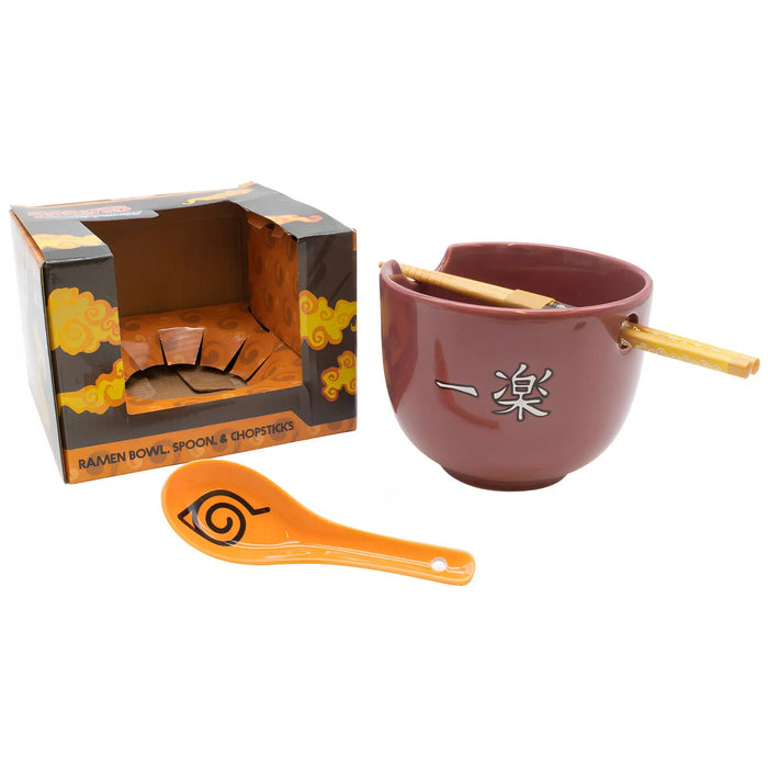 The bowl is thoughtfully crafted with a dedicated spot to rest your chopsticks between bites, making it the ideal companion for your ramen sessions. The set also includes an orange spoon, adorned with the iconic Hidden Leaf Village headband symbol, adding an authentic ninja touch to your mealtime.