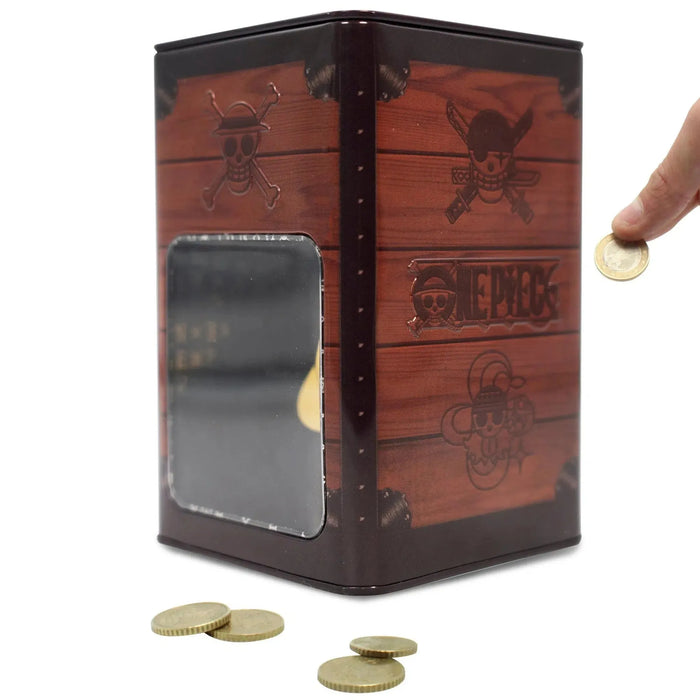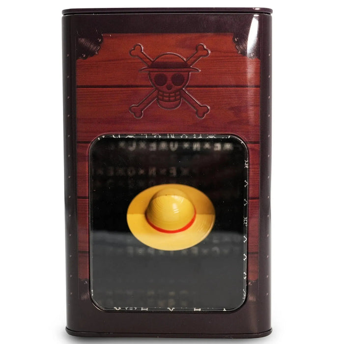 Secure your treasure with the One Piece Money Bank Strawhat by ABYstyle, a unique and stylish coin bank designed to keep your plunder safe from both grubby hands and prying eyes, whether they belong to crewmates or roommates. This coin bank takes the form of a treasure chest adorned with the Jolly Rogers of beloved One Piece characters, adding an adventurous touch to your savings.