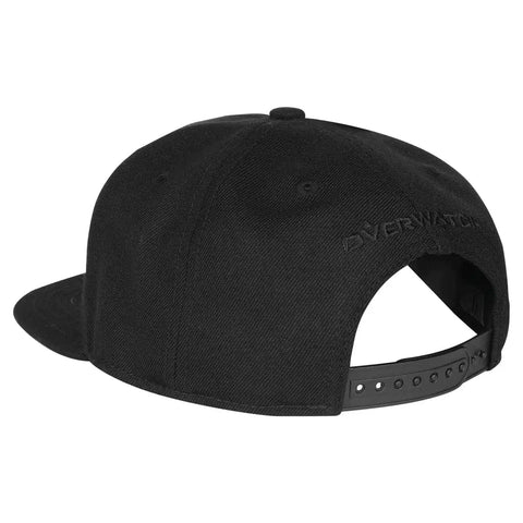 Design Details: Black snapback hat featuring a black Overwatch symbol embroidered on the front and a black Overwatch logo embroidered on the back.