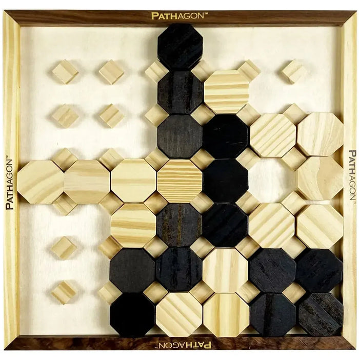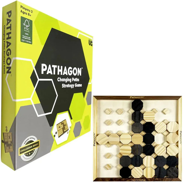 Each turn, players place wooden tiles strategically while also blocking their opponent’s moves. With simple rules but deep strategy, Pathagon is easy to learn yet endlessly replayable. It’s an ideal introduction to abstract games for kids while still delivering enough complexity to engage adults.