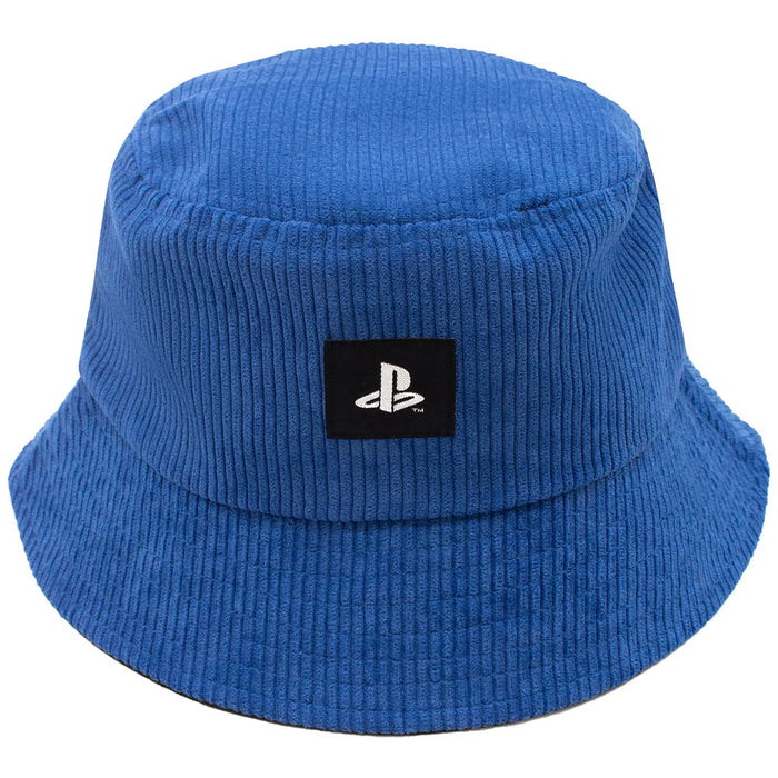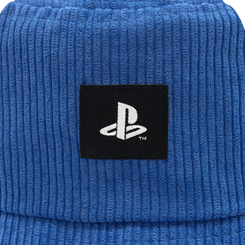 Design 1: The blue bucket hat features a small PlayStation logo patch on the front for a subtle, stylish look.