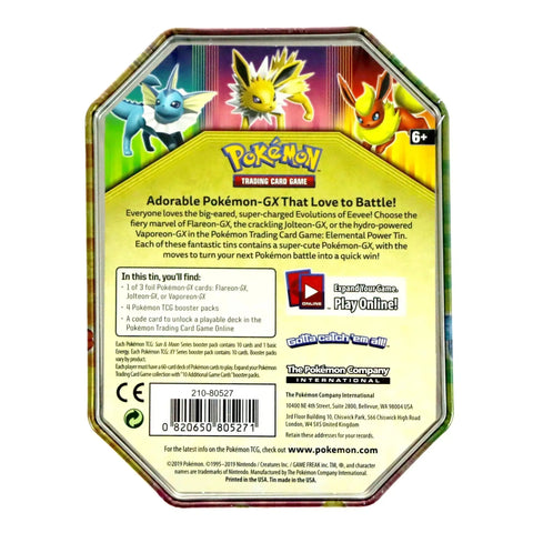 Whether you're a collector or a strategic player, the Pokémon [Elemental Power] - Vaporeon GX Tin offers a unique blend of rarity and aquatic prowess. Elevate your Pokémon battles with the hydro-powered Vaporeon-GX, backed by booster packs and online play access. Dive into the Elemental Power Tin today and make a splash in your Pokémon collection with the dynamic Vaporeon-GX!