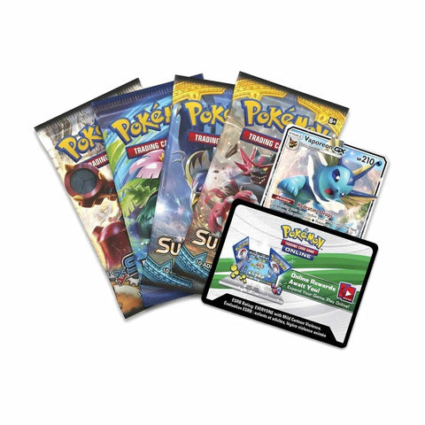 Inside this captivating tin, uncover a treasure trove of Pokémon delights. The foil Vaporeon-GX card takes center stage, capturing the essence of water-themed power. Complementing this exclusive card are 4 Pokémon TCG booster packs, each containing 10 cards. Packs may vary! As an extra bonus, the tin includes a code card that unlocks a playable deck in the Pokémon Trading Card Game Online, expanding the excitement to the digital realm.
