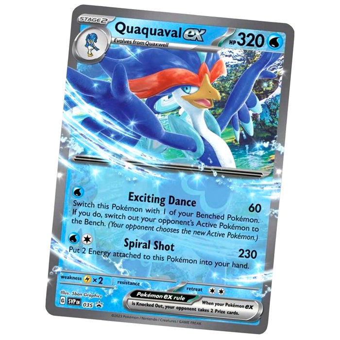 Command a rousing performance on the battlefield with a fully evolved first partner Pokémon ex! Choose the dazzling dance moves of Quaquaval ex in this Pokémon TCG: Paldea Partners Tin. Then, find even more Pokémon for your team inside the included booster packs!