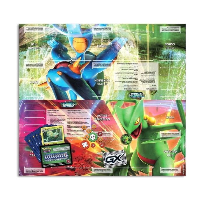 Celestial Storm Expansion: Immerse yourself in the Celestial Storm expansion, a captivating addition to the Sun and Moon series within the Pokémon TCG. This theme deck introduces Sceptile as the leader Pokémon, featuring two captivating cards showcasing its power and agility.