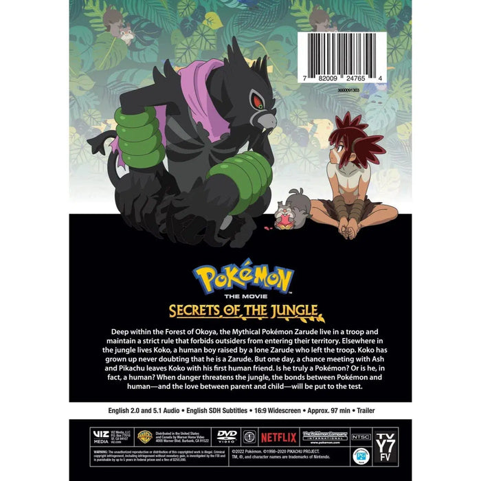 Pokémon the Movie: Secrets of the Jungle centers around Koko, a young boy raised in the wild by the Mythical Pokémon Zarude in the secluded Forest of Okoya. Koko has been raised to believe that he is a Pokémon, living harmoniously among the jungle's Pokémon inhabitants. However, his world is turned upside down when he meets Ash and Pikachu, and he begins to question his true identity as he learns about humans for the first time.