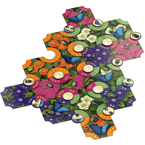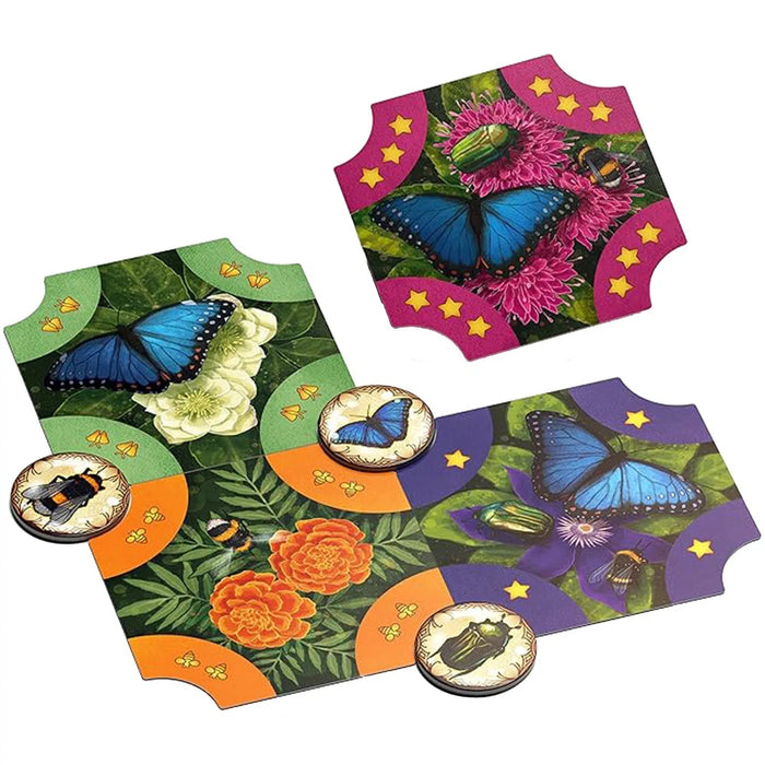 Engaging Tile Placement Gameplay: Strategically place garden cards to create a lush flower garden, attracting pollinators to help you score points.