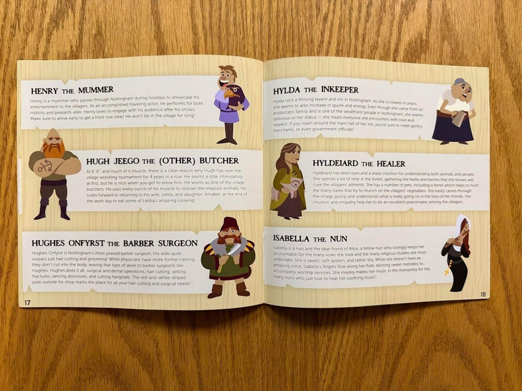 Yet there is hope! The leaders of Robin Hood's Merry Band — Friar Tuck, Maid Marian, Little John and otheres — are each gathering together a Band of Villagers to come to the rescue. Each player represents one of these bold leaders.