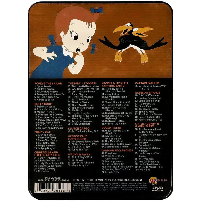 Includes 100 Vintage Cartoon Episodes: A massive compilation of 100 classic animated shorts, offering an extensive mix of genres, styles, and characters from animation history.