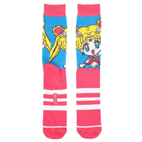 Step into the magic of the Moon Kingdom with the Sailor Moon - Sailor Guardians (Senshi) Striped Crew Socks (5 Pairs) by Bioworld. This enchanting set features five pairs of crew socks, each designed with vibrant stripes and motifs inspired by the beloved Sailor Guardians. Perfect for fans of the iconic anime, these socks combine functionality with a touch of cosmic style, making them an essential accessory for any Sailor Moon enthusiast.