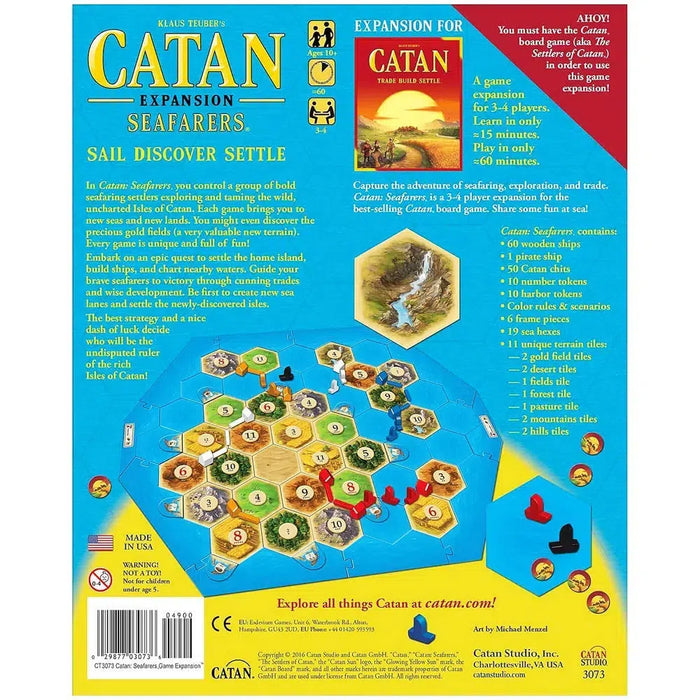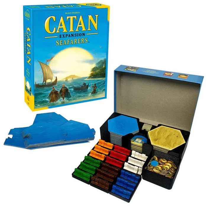 In Catan: Seafarers Expansion you control a group of bold seafaring settlers exploring and taming the wild, uncharted Isles of Catan. Each game brings you to new seas and new lands. You might even discover the precious gold fields (a very valuable new terrain). Every game is unique and full of fun!