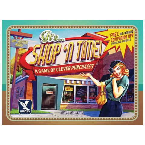 Get ready for the ultimate shopping spree in Shop 'N Time!—a real-time, app-assisted card game that challenges you to shop like never before! Step into a magical store with products from across time, from vintage aftershave from 1949 to a quirky fly swatter from 2014. The key to success? A good eye and quick reflexes to snag the best bargains!