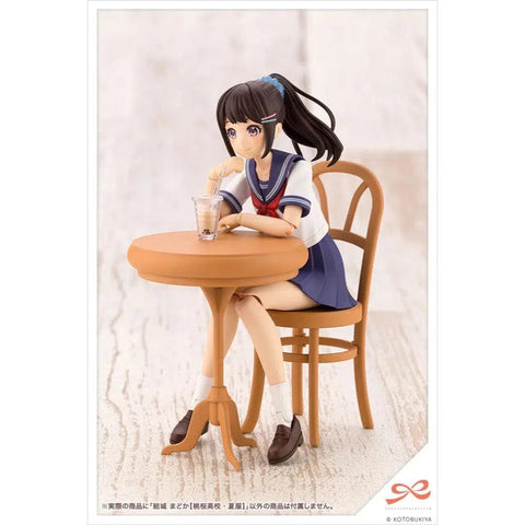 Presenting the Sousai Shojo Teien - Madoka Yuki Model Kit (High School Summer Clothes Outfit Version) by Kotobukiya, a delightful addition to the enchanting world of plastic model kits. Designed by the renowned Japanese illustrator En Morikura, this figure captures Madoka Yuki in her Touou High School Summer Clothes, exuding an aura of elegance and contrast with its striking white and navy blue uniform.