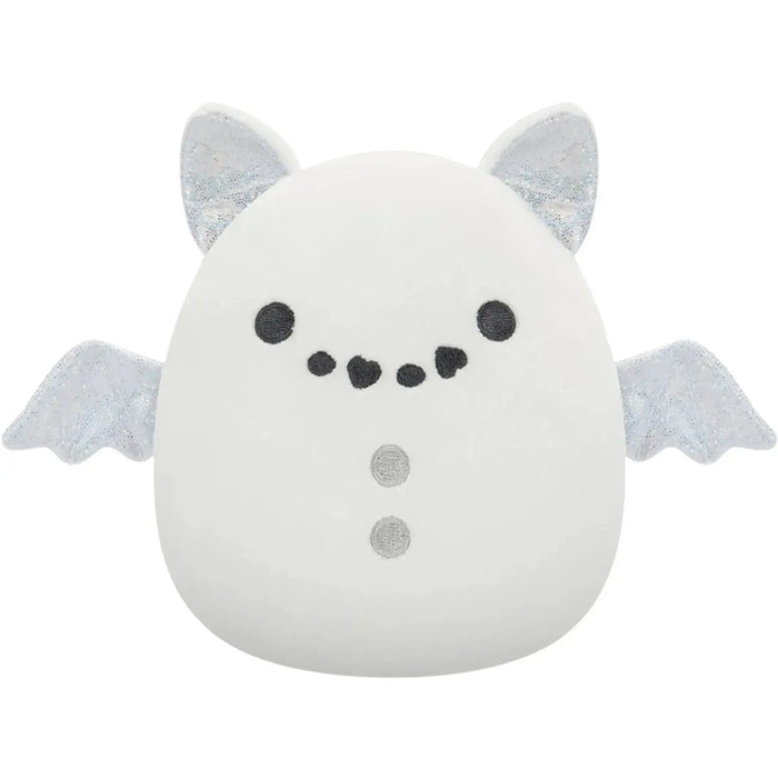 Celebrate the magic of winter with Snowman Emily the Bat, a dazzling addition to the Celebrate the Season of Squish Select Series. Inspired by her love of space and dreams of becoming an astronomer, Emily brings celestial charm to her festive snowman transformation. Her crisp snowy-white body captures the essence of freshly fallen snow, while sparkling silver metallic inner ears and wings add a shimmering, starry-night touch. Finished with round black “coal” eyes, a stitched coal smile, and two silver belly buttons, this enchanting design blends holiday whimsy with Emily’s cosmic personality.