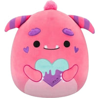 Celebrate love and squishy comfort with the Squishmallows – Valentine’s Edition Purple Heart with Teal Drip Mont Plush (12") by Jazwares. This charming seasonal release captures Mont’s playful personality in a festive Valentine’s design that blends sweetness with a quirky twist. Featuring a vibrant pink body, a smooth light pink belly, and striped purple-and-light-pink horns, Mont stands out with heart-shaped purple blush and a soft tuft of pink hair. In his arms, he holds a purple heart topped with teal “dripping” frosting and detailed with a stitched scar on the side—adding a dash of character and storytelling flair to this collectible companion.
