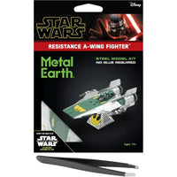 Star Wars - Resistance A-Wing Fighter Figure Model Kit (Steel, Challenging Difficulty) - Fascinations - Metal Earth Series brings to life the sleek and agile starfighter used by the Resistance in their fight against the First Order. Known for its blazing speed and precision combat abilities, the A-Wing played a vital role in the final battle of the Skywalker saga. Designed for experienced builders, this challenging difficulty model delivers an intricate and rewarding assembly experience, making it a must-have for Star Wars enthusiasts and collectors.
