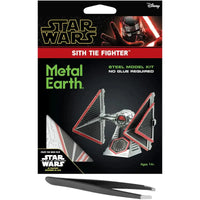 Star Wars - Sith TIE Fighter Figure Model Kit (Steel, Challenging Difficulty) - Fascinations - Metal Earth Series brings the menacing starfighter of the Sith Eternal fleet to life in intricate steel detail. Featured in Star Wars: The Rise of Skywalker, this advanced TIE variant boasts aggressive wing designs and enhanced weaponry, making it a deadly force in battle. Designed with challenging difficulty, this model kit is perfect for dedicated builders and Star Wars collectors seeking an engaging assembly experience.