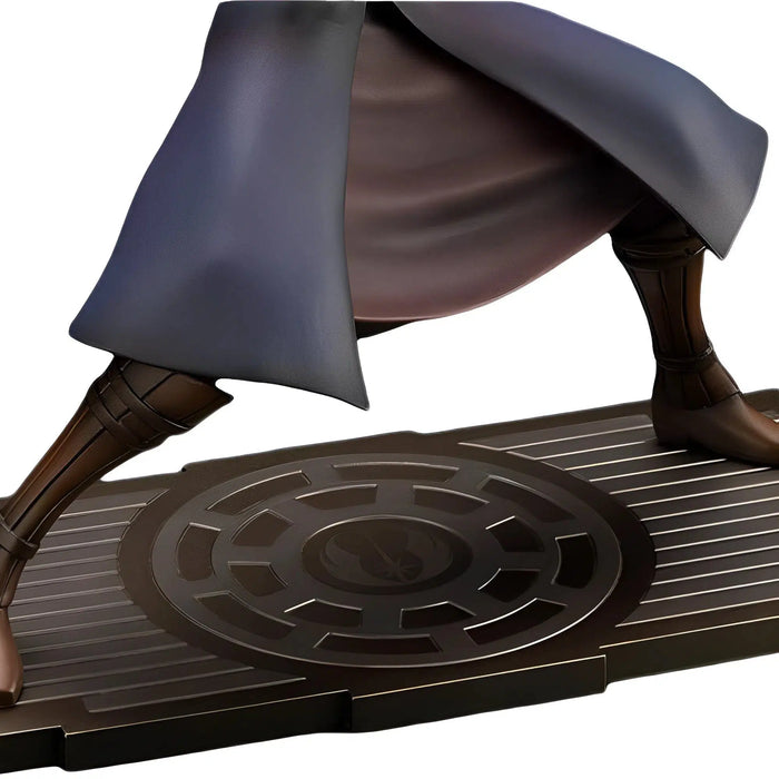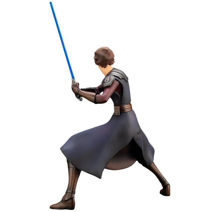 With the beloved animated series, Star Wars: The Clone Wars, now on Disney+, Kotobukiya celebrates Anakin's legacy with this elegant statue. Crafted with an intricate balance of detail and smooth texturing, each surface is seamlessly colored to replicate the animated aesthetic in a modernized 3D style. The translucent blue of his lightsaber symbolizes his alliance with the Jedi, adding to the statue's authenticity.