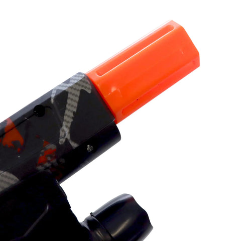 For enhanced customization, the Stealthfire comes with a Flash Hider orange tip that can replace the standard orange tip with ease. Thanks to a notch at the top, swapping the tips is simple: turn the existing tip, pull it out, insert the new one, and turn it back into place for a secure fit. This added feature allows users to personalize their blaster while maintaining compliance with safety standards.