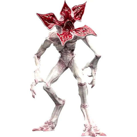 Its iconic head bloom is wide open, revealing a maw lined with jagged menace, while its stance suggests it’s moments away from unleashing chaos. The sculpt oozes unsettling charm—an ideal fusion of horror and stylization that makes it both a standout display and a conversation starter. It’s not just a figure; it’s the physical embodiment of Stranger Things’ spine-tingling suspense.