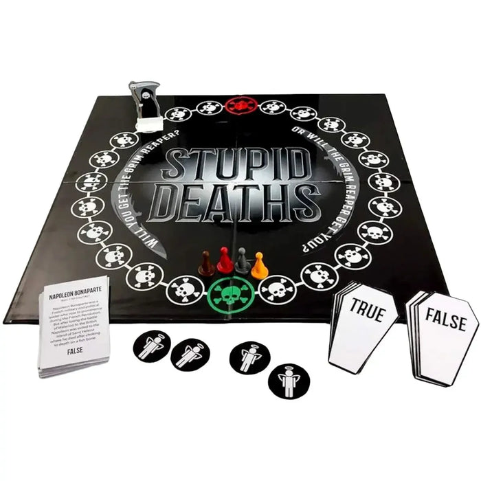 Get ready for a wild ride through history’s most absurd endings with Stupid Deaths, the trivia board game that turns fatal facts into laughter. Dive into a world where strange but true stories meet hilariously bad luck, and test your ability to separate bizarre myths from real-life ridiculousness.