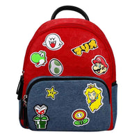 Show off your love for Super Mario with the Super Mario - Game Character Patches Mini Backpack (Embossed) by Bioworld. This stylish mini backpack boasts a bold red and denim blue two-tone design, accented with colorful patches of your favorite characters from the beloved video game franchise. It’s the perfect accessory for fans of all ages, combining eye-catching aesthetics with everyday practicality.