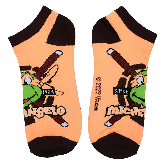 Celebrate the classic origins of your favorite heroes in a half shell with the Teenage Mutant Ninja Turtles - 1984 Retro Turtles Ankle Socks Set (5 Pairs) by Bioworld. Inspired by the original TMNT design, this sock set brings a nostalgic touch to your everyday wardrobe.