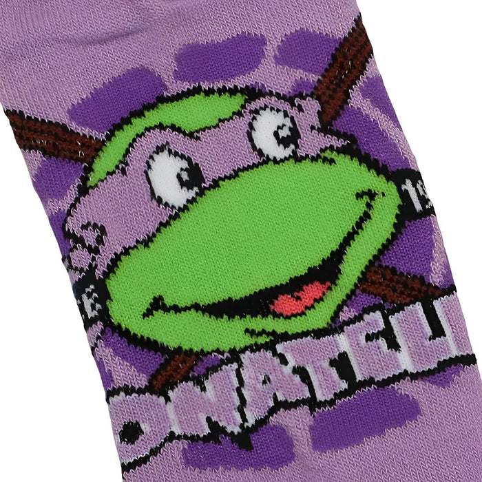 This set includes five unique pairs, each showcasing retro-style designs that pay homage to Leonardo, Michelangelo, Donatello, and Raphael. Perfect for fans of the classic TMNT era, these socks allow you to mix and match your favorite turtle-themed patterns.