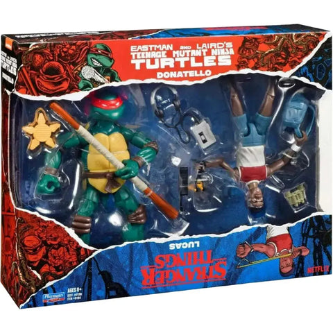 Dive into a totally radical crossover where two fan-favorite universes collide—Teenage Mutant Ninja Turtles meets Stranger Things! This exclusive set brings together Donatello, the tech genius of the turtles, and Lucas Sinclair, the quick-witted and brave member of the Hawkins crew. Both heroes are ready to face the mysterious forces threatening their worlds in this thrilling collaboration.