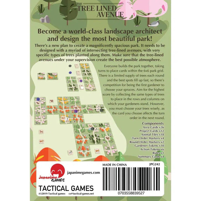 6x6 Grid Layout: Players build their park on a 6x6 grid, placing trees strategically to enhance the beauty of their assigned avenues.