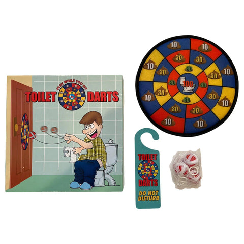 Introducing Toilet Darts by Island Dogs, the perfect gag gift game for those who enjoy extended bathroom breaks! This entertaining game comes with a dartboard that easily attaches to the wall or door. Simply aim and throw the darts while seated for some hilarious fun.